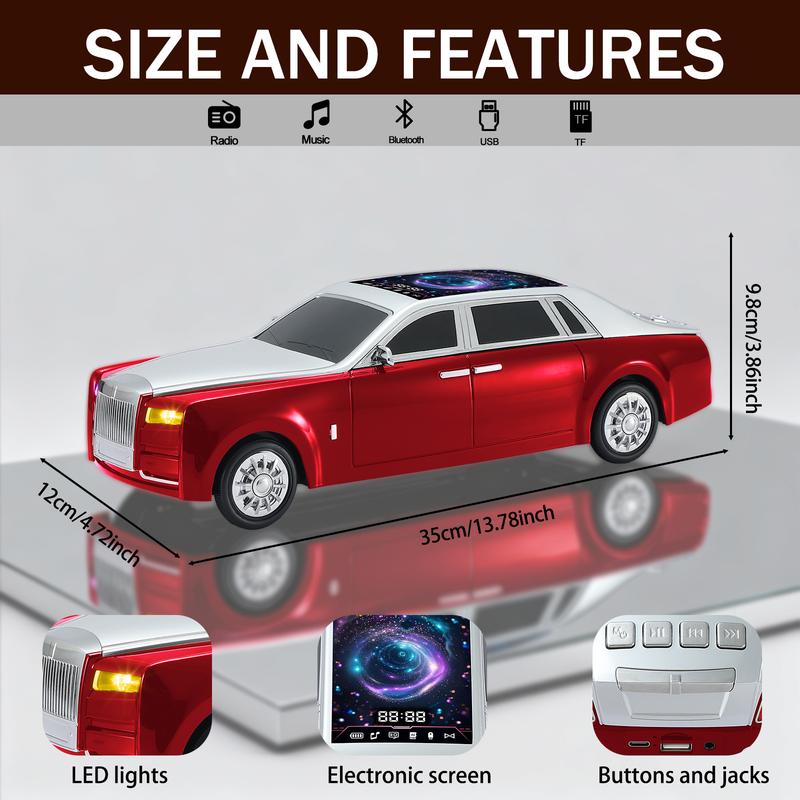 STYLISH RETRO CAR DESIGN WITH LED DISPLAY: Combining a retro car look with modern tech, this speaker brings charm to any space. The built-in LED display shows time, playback mode, and battery level—adding both functionality and flair to your decor.