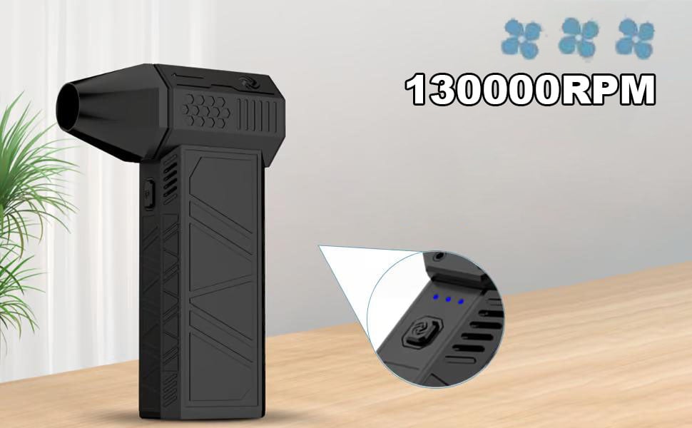 The turbo fan uses a high-speed brushless DC motor with 130,000RPM to generate super strong airflow to clear debris and dust from any gaps.
